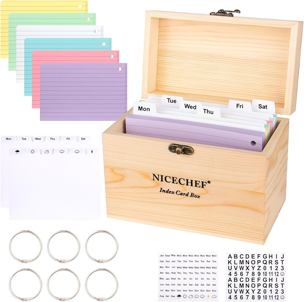 Equipped with 300x perforated index annotations (available anytime), 6x metal rings (for binding annotations into portable booklets), 12x white dividers (for classification), and 2x functional stickers: 1x for month/workday/weather, 1x for letters/smiley face
