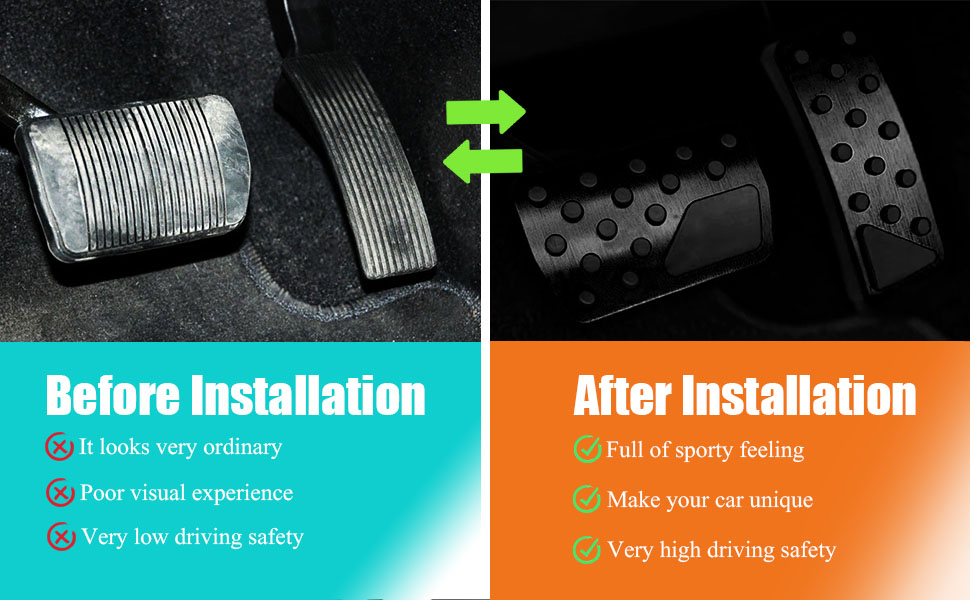 【Premium Material】The pedal cap is made of aluminum alloy and rubber. The metal and rubber will not fall off or separate. The non-slip rubber surface can increase friction and improve driving experience and safety factor.