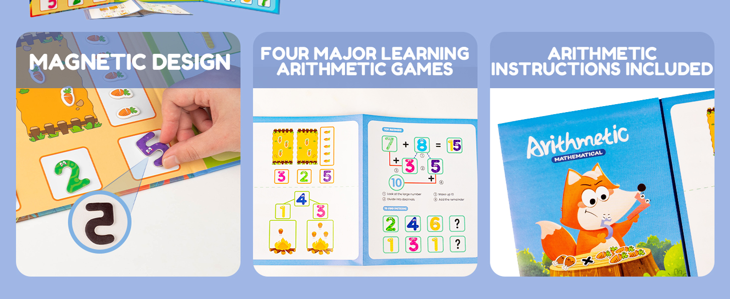تصميم محمول ثلاثي الطي للتعلم في أي مكان: كتاب الأرقام المغناطيسية المدمج خفيف الوزن وسهل الحمل. إنها مثالية للتعلم في المنزل أو في الفصل الدراسي أو أثناء التنقل، مما يجعلها ألعاب تعليمية سهلة الحمل للغاية للأطفال الصغار