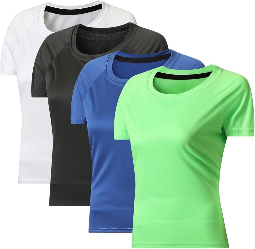 【عبوة من 4 قمصان رياضية للسيدات - القيمة تلبي التنوع】: 4 قطع من القمصان الرياضية للسيدات توفر خيارات ألوان متعددة للمزج والمطابقة. مثالي لملابس صالة الألعاب الرياضية، أو التدريبات الخارجية، أو السفر، أو الطبقات. الأداء والراحة والتنوع اليومي في مجموعة ملابس رياضية أساسية واحدة.