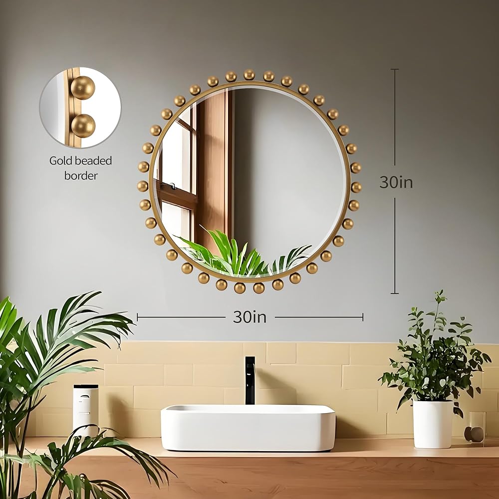 مرآة حائط مستديرة مثالية مقاس 30 بوصة لغرف المعيشة والمداخل وغرف النوم والممرات، مما يضيف لمسة راقية نقطة محورية بصرية لأي مساحة حائط داخلية.