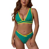 تصميم أنيق بألوان متعددة: تميز في أي حفلة حمام سباحة مع طقم البكيني العصري ذو الألوان المتعددة الذي يجمع بين الألوان النابضة بالحياة لمظهر عصري. يخلق الجزء العلوي المثلث ذو الرقبة العميقة على شكل حرف V صورة ظلية جذابة، مما يجعل ملابس السباحة المثيرة هذه ضرورية لخزانة ملابسك في العطلة الصيفية.