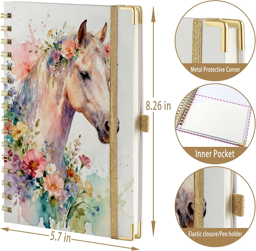 Horse Gifts for Women Girls A5 Spiral Notebook Journal 200 Pages A5 Lined with Pen for Horse Lovers