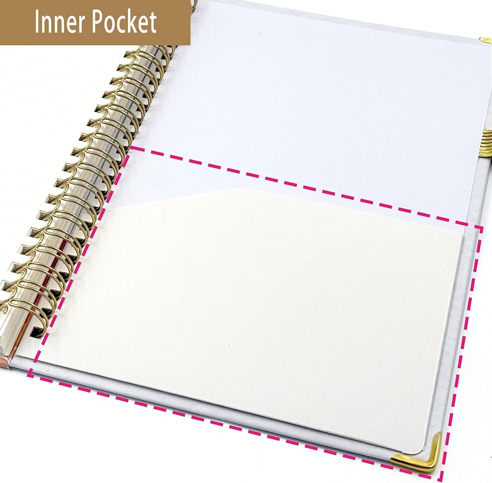 A5 Size for Versatile Uses: Our spiral notebook adopts a standard A5 size, approximately 8.5 x 5.7 inches, which is compact and easy to carry in bags, purses, or backpacks while providing ample writing space. It contains 100 sheets (200 pages) of premium paper, suitable for daily journaling, note-taking, sketching, to-do lists, or recording memorable moments. The built-in back storage pocket adds extra convenience for organizing small essentials