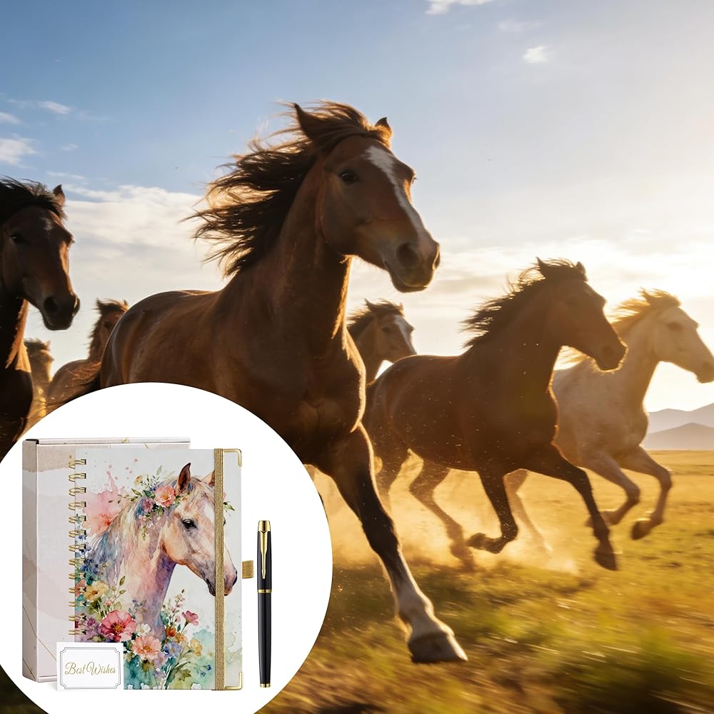 Exquisite Horse Journal Notebook Set: Featuring a high-quality hardcover, our notebook emanates sophistication and durability that lasts. Each set includes one horse-themed A5 spiral notebook, one smooth-writing metal ballpoint pen, and one heartfelt greeting card—all elegantly packaged in a stylish gift box. This all-in-one bundle is a perfect, ready-to-gift option for any occasion, saving you the trouble of additional preparation