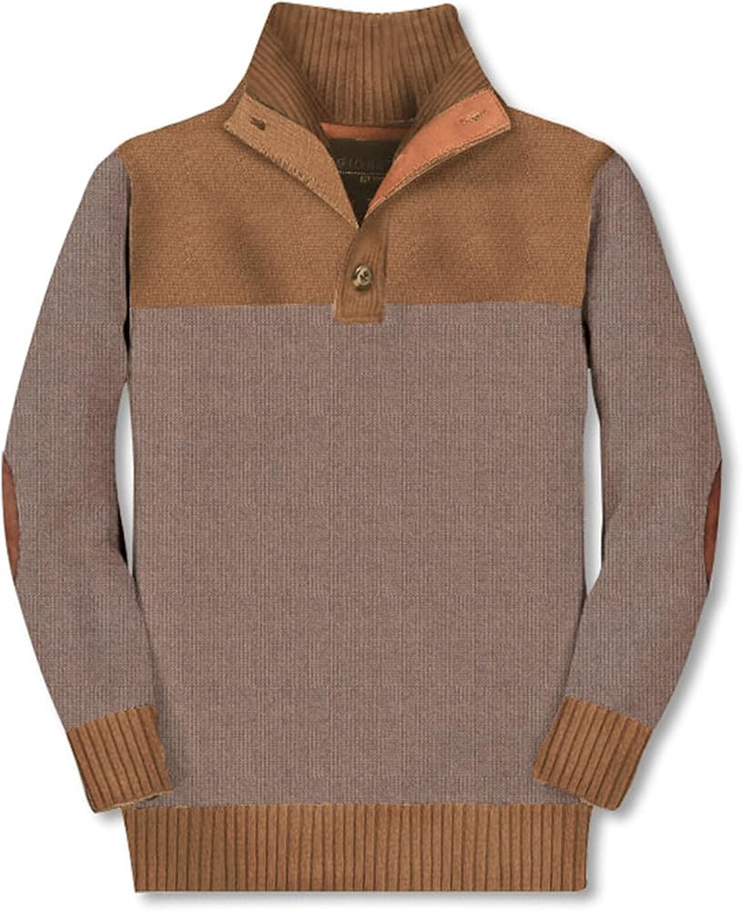 Made for cooler days, this long sleeve knit pullover will take your boys style up a notch with its two tone color, elbow patched and slim fit.
