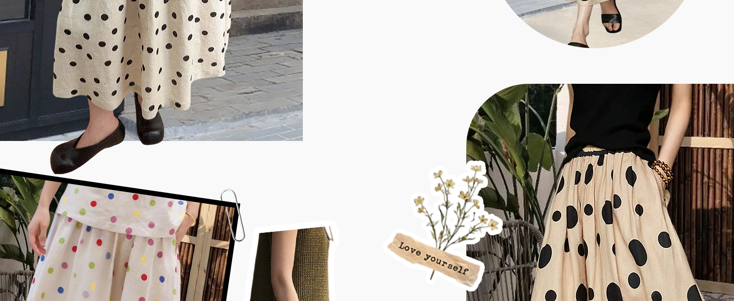 Ultimate Comfort: Our polka dots a-line skirts Crafted from high quality linen fabric, long flowy skirt ensures all-day comfort while keeping you cool during fall season, making it an essential choice for womens summer skirts