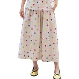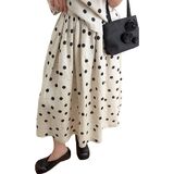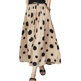 Causal Style: Flowy linen midi Skirt for women featured trendy cute polka dots print design that adds a touch of elegance, making it the perfect swing long skirt for any casual occasion