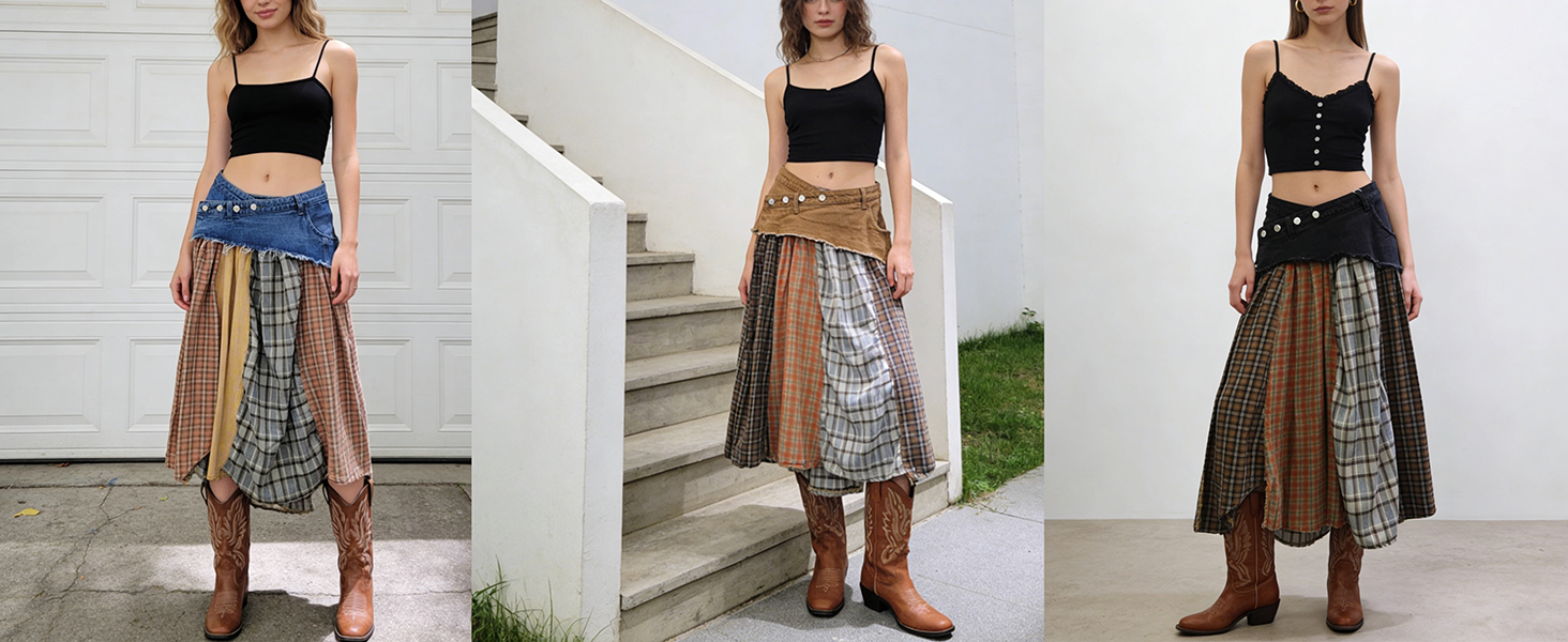 تصميم فريد: يتميز بمزيج لطيف من الجزء العلوي من الدنيم مع حاشية مكشكشة منقوشة، مما يخلق تأثيرًا ملفتًا للنظر