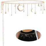 نمط الشرابة السماوية: تتميز بشراشيب أنيقة على شكل نجمة وقمر، سلسلة الخصر هذه تضفي لمسة سماوية حالمة على مظهرك. يضيف تصميم الشرابة المتدفقة الحركة، مما يجعله إكسسوارًا مميزًا لكل من الملابس الكاجوال والملابس الرسمية