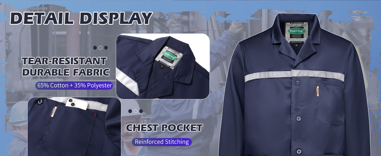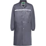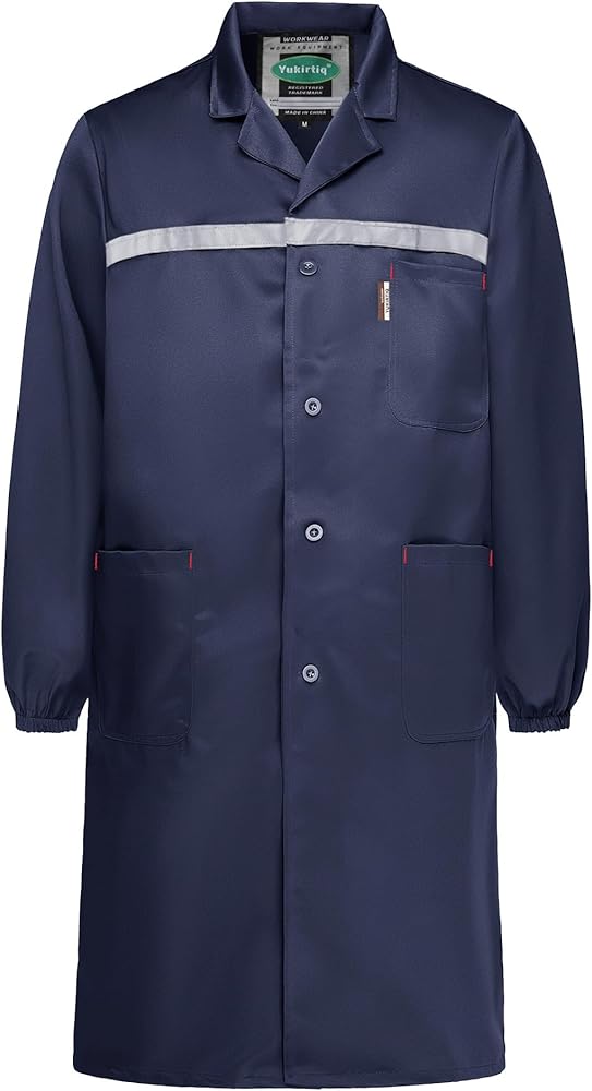 • معطف المختبر مع شرائط عاكسة: يتميز معطف المختبر هذا بعناصر عاكسة تجعله مرئيًا لأي بيئة مظلمة أو مختبر. الأصفاد المرنة تمنع الأجزاء الصغيرة أو السوائل من الانزلاق إلى الداخل، مما يوفر المزيد من الأمان.