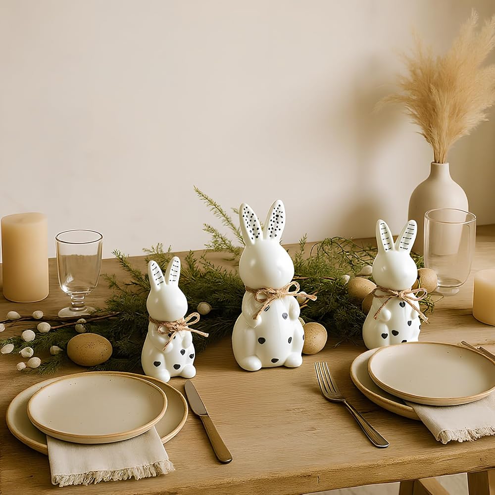 Rabbit is a symbol of spring recovery and new birth. These adorable white bunnies are suitable Easter or spring decoration. You can use them as a spring or Easter centerpiece. These cute statues add life to our living room table when decorating for Easter