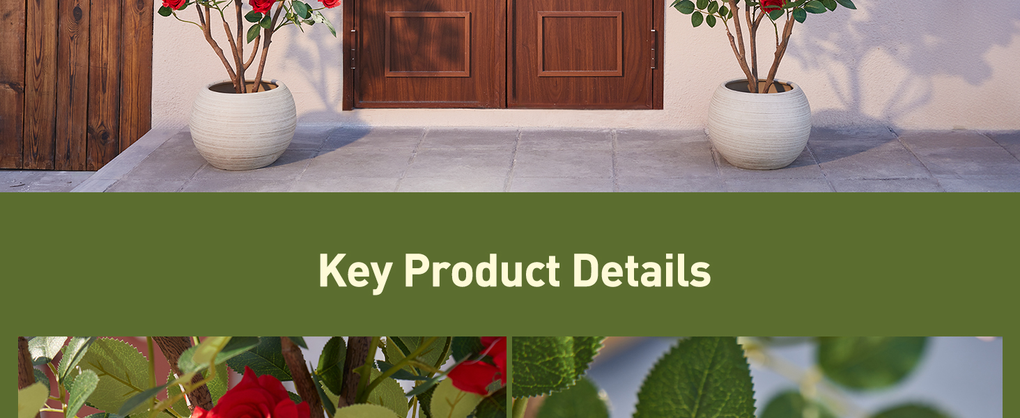 ألوان وأحجام متعددة في تصميم وعاء واحد: اختر من بين الورود الاصطناعية النابضة بالحياة باللون الأحمر أو الوردي أو البرتقالي أو الأبيض بأحجام 3 أقدام أو 4 أقدام. تأتي كل نبتة وردة صناعية من VeriNatural كوحدة واحدة ثابتة في وعاء أسود أنيق، وجاهزة لرفع مساحتك الداخلية أو الخارجية على الفور