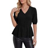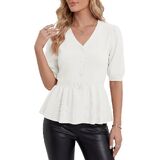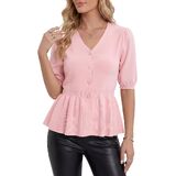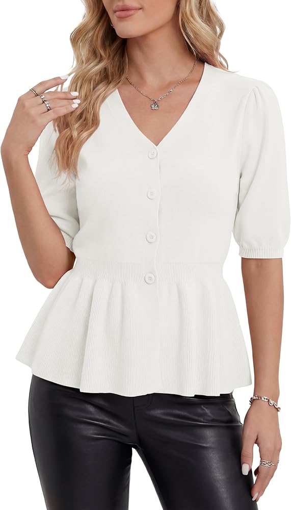 تصميم أنيق: مصمم بأكمام قصيرة منتفخة وخصر بيبلوم مشدود، هذا الجزء العلوي من البيبلوم المحبوك يعزز بشكل جميل الانحناءات الأنثوية. تضيف الأزرار الأمامية البعد والأناقة، مما يجعلها قطعة مميزة في أي خزانة ملابس