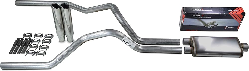 These kits will give your truck that rumble you come to expect from a muscle car . The dual 2.5" Mandrel bent pipe will improve the exhaust flow and give you the a boost in power and fuel economy that you normally only get from much more expensive systems . They feature 2.5" mandrel bent pipe that are aluminized to increase life.These pipes exit under the passenger side behind rear tire. They are designed to clear OEM installed reciever hitch and OEM size spare tire. System is designed to fit all wheel base applications. These are a basic kit that will include everything from the muffler to the bumper.*Please be aware: THIS IS NOT A COMPLETE DIRECT FIT KIT . These systems are to be installed by an experienced professional installer FABRICATION MAY BE REQUIRED . any type of suspension modification/wheel and tire altercation may affect system clearances. We DO NOT provide any portion of the exhaust in front of the muffler . Additional parts & fabrication may be necessary and is to be determined by the installer .