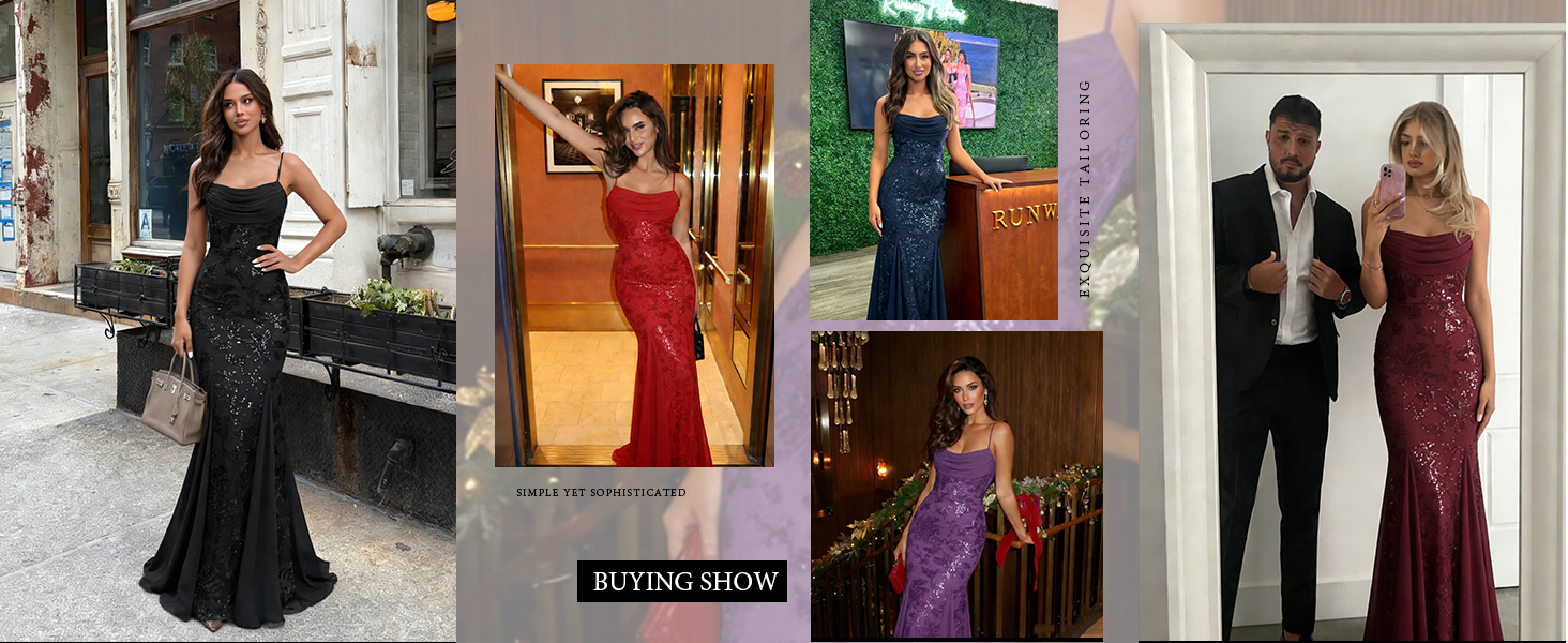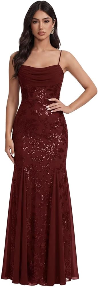المزايا: فستان السهرة الرسمي هذا يحتوي على ترتر لامع، وأشرطة سباغيتي، ورقبة على شكل بقرة، وحورية البحر، ومكشكش، ومطوي، وحمالة صدر مدمجة، وترتر لامع