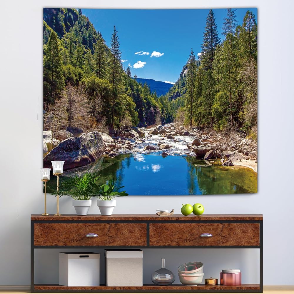 avinyl الطبيعة الغابات نسيج الجدار لغرفة النوم، ذات المناظر الطبيعية الخلابة شجرة الصنوبر الخضراء جبل جدار جدارية المفروشات للرجال، السماء المناظر الطبيعية نسيج خلفية لغرفة المعيشة النوم مكتب ديكور المنزل 51in × 60in