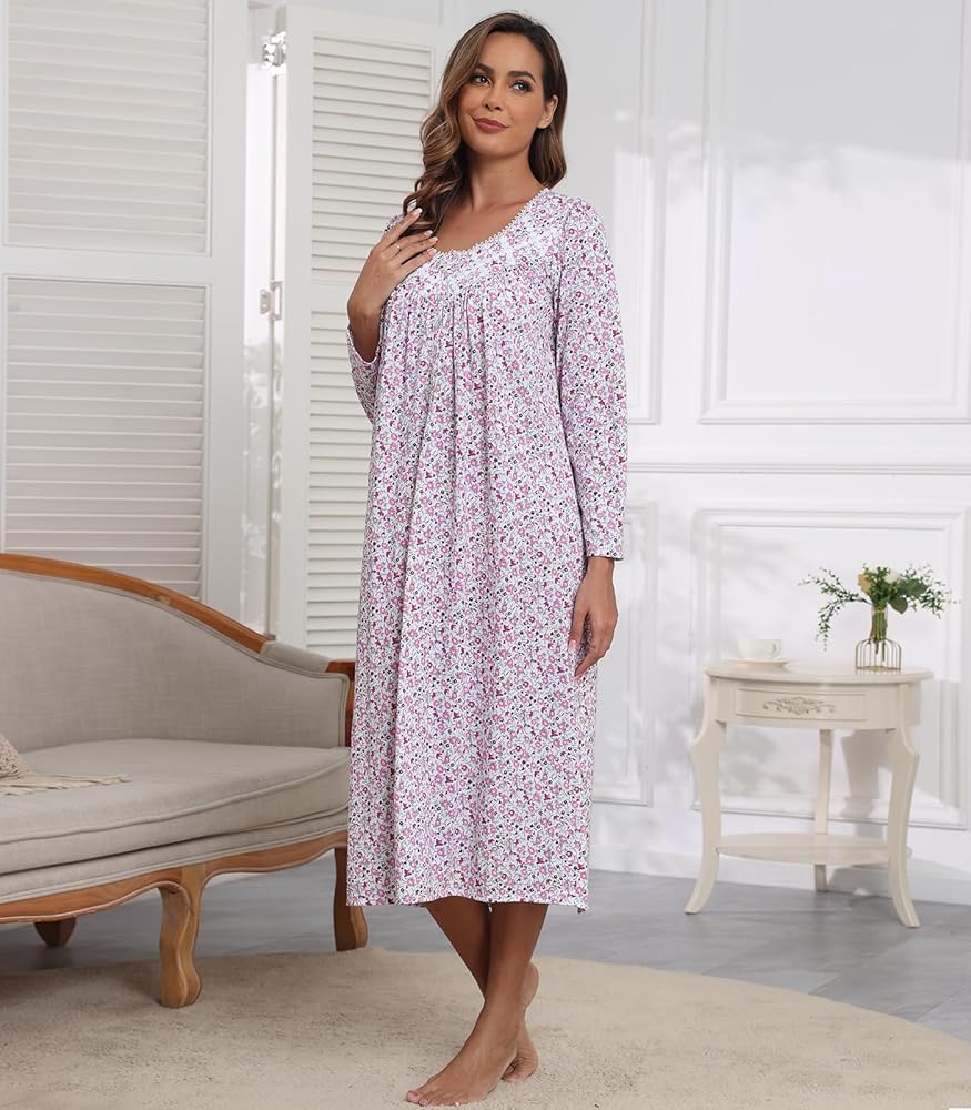 التصميم: فساتين نوم نسائية تمزج بين التصميم التقليدي والحديث مع تفاصيل جميلة وأقمشة عالية الجودة، كاجوال فضفاض ومريح. فساتين النوم الطويلة تضيف لمسة من الأناقة والراحة للسهرات الدافئة، فساتين نوم نسائية أساسية لخزانتك