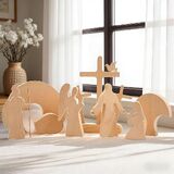 Easter Scene Set: This wooden ornamental set comprises eight core elements including the empty tomb, angels, a figure of Christ, and a cross, faithfully recreating the religious narrative of Christ's Resurrection at Easter. Each piece is meticulously crafted to preserve the solemnity of religious symbolism while conveying a warm atmosphere through the gentle texture of wood. Whether displayed in a family living room, a church prayer room, or an office showcase, this complete narrative scene serves as a tangible embodiment of faith and hope.