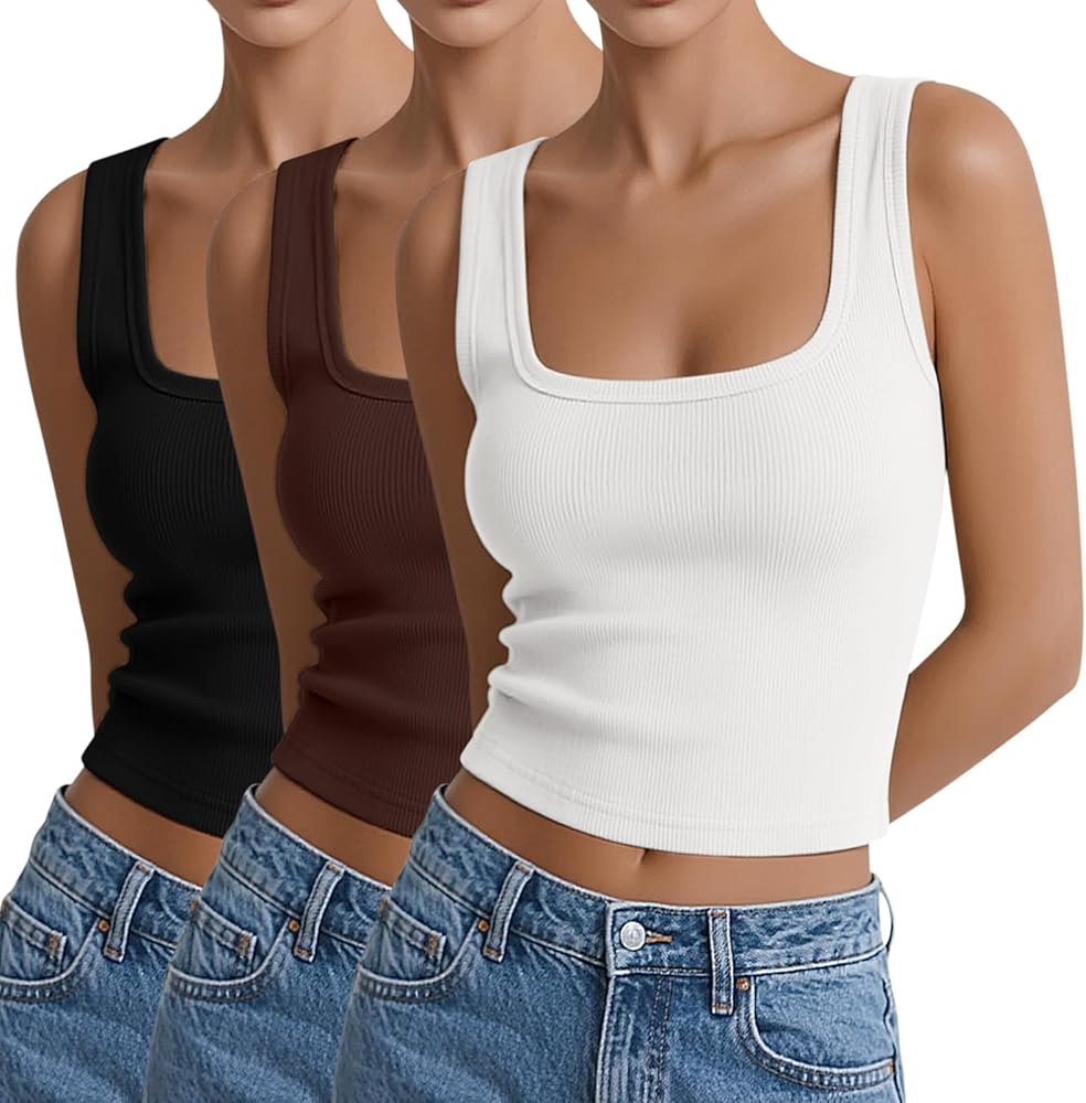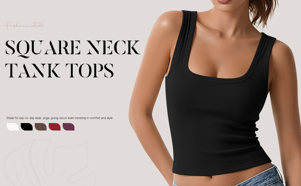 خط عنق مربع عصري: قميص بدون أكمام ذو رقبة مربعة جذابة وأشرطة كتف واسعة، والجزء العلوي يؤطر عظمة الترقوة والرقبة بشكل أنيق. مع تصميم بدون ظهر وصورة ظلية قصيرة، قميص بدون أكمام يجب اقتناؤه للنساء