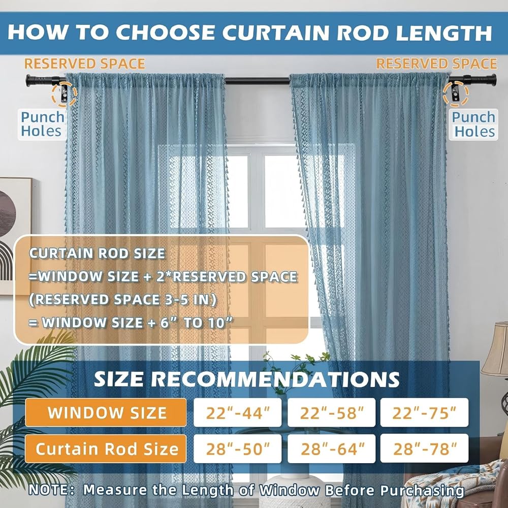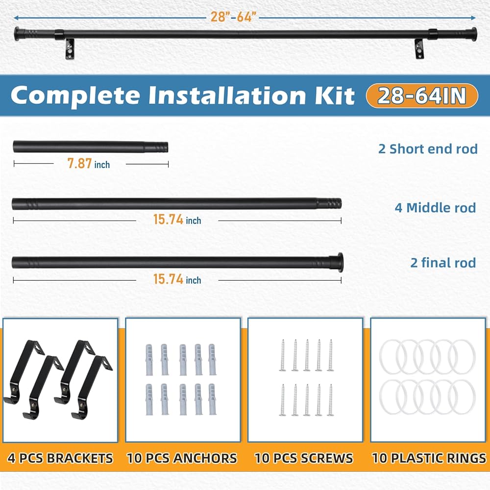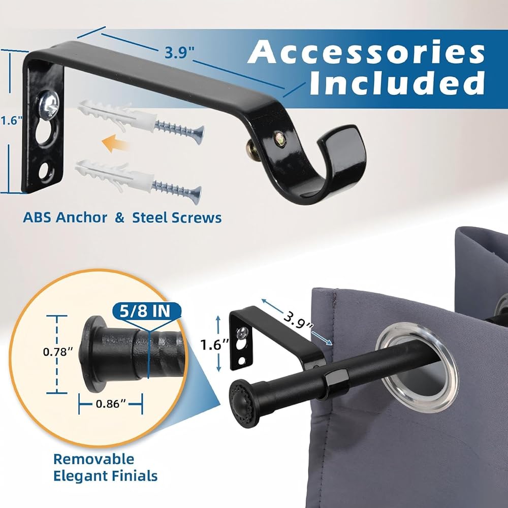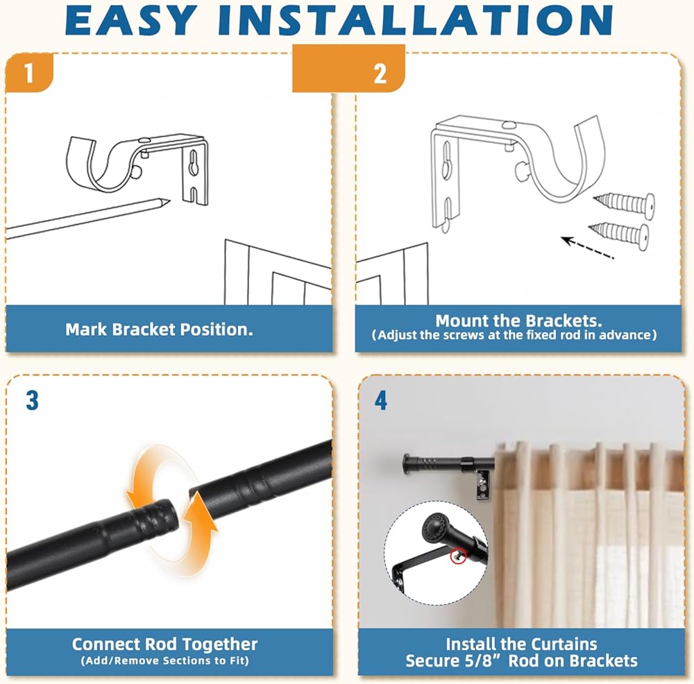 ✅ مجموعة من قطعتين من قضبان الستارة: تتضمن جميع أدوات التثبيت. ما عليك سوى توصيل أقسام القضيب والأقواس الآمنة للتركيب السهل لشخص واحد. تناسب مجموعة قضبان الستارة مقاس 5/8 بوصة إعدادات متنوعة مثل المطابخ وغرف النوم وغرف المعيشة والأبواب الزجاجية المنزلقة والمقاهي وبيوت المزارع والباحات الخارجية.