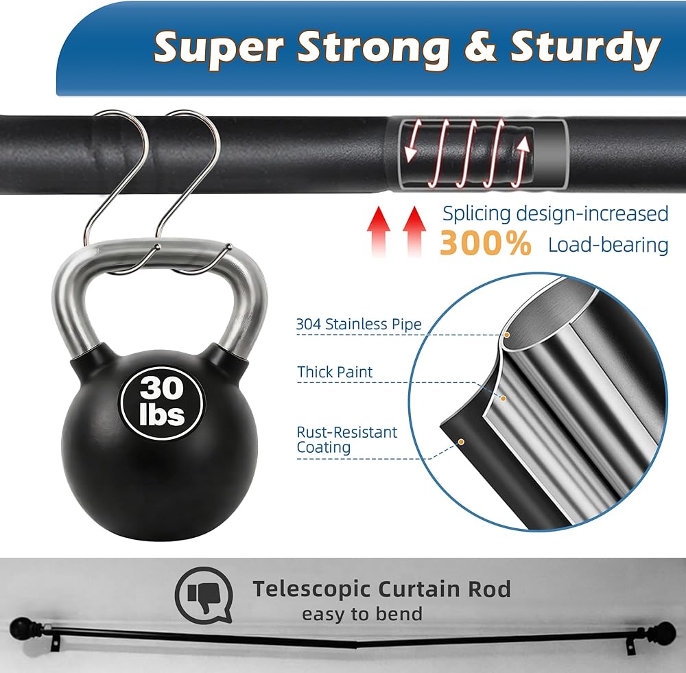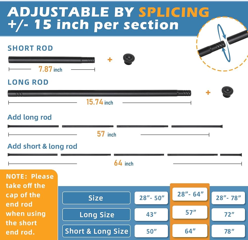 ✅ دعم قوي للستائر خفيفة الوزن: يضمن التصميم المقسم قطرًا موحدًا للقضيب، مما يعزز سعة الوزن حتى 25 رطلاً. يحمل بشكل آمن ستائر خفيفة إلى متوسطة الوزن دون ترهل. هذا القضيب مثالي للأقمشة الشفافة والكتانية وغيرها من الأقمشة خفيفة الوزن المستخدمة عادة في غرف النوم والمركبات الترفيهية.