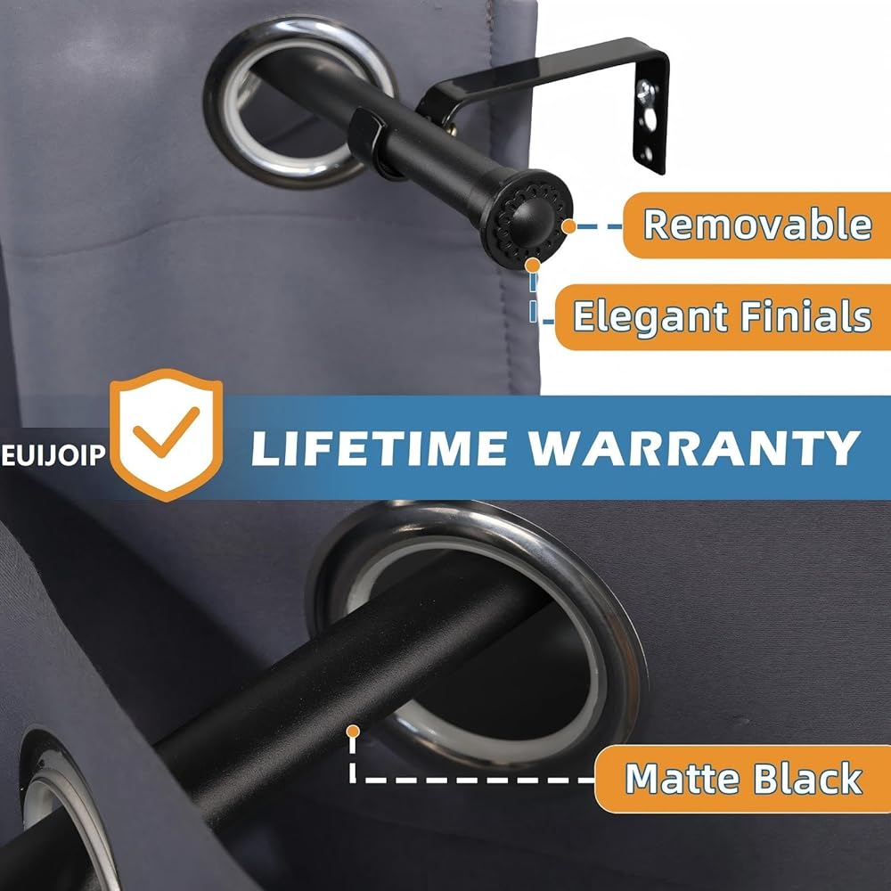 ✅ جماليات بسيطة، أقصى تأثير: المظهر الجانبي الأنيق مقاس 5/8 بوصة مع لمسة نهائية سوداء غير لامعة عميقة يضفي على المساحات سحرًا صناعيًا عصريًا. يعمل التصميم البسيط على رفع مستوى الديكور الداخلي، مما يجعل الستائر الرائعة هي النقطة المحورية البصرية.