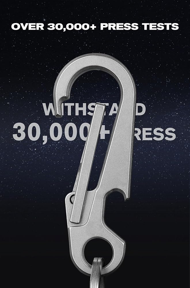 It combines superior load-bearing capacity (22 lbs) with an ultra-lightweight (0.58 oz) build. It features a widened quick-release gate for easy operation and long-lasting durability, along with a unique anti-loss safety hole to prevent keys from detaching accidentally. Additionally, it innovatively integrates a bottle opener function, making it the ultimate portable tool for various scenarios from daily commuting to camping and hiking.