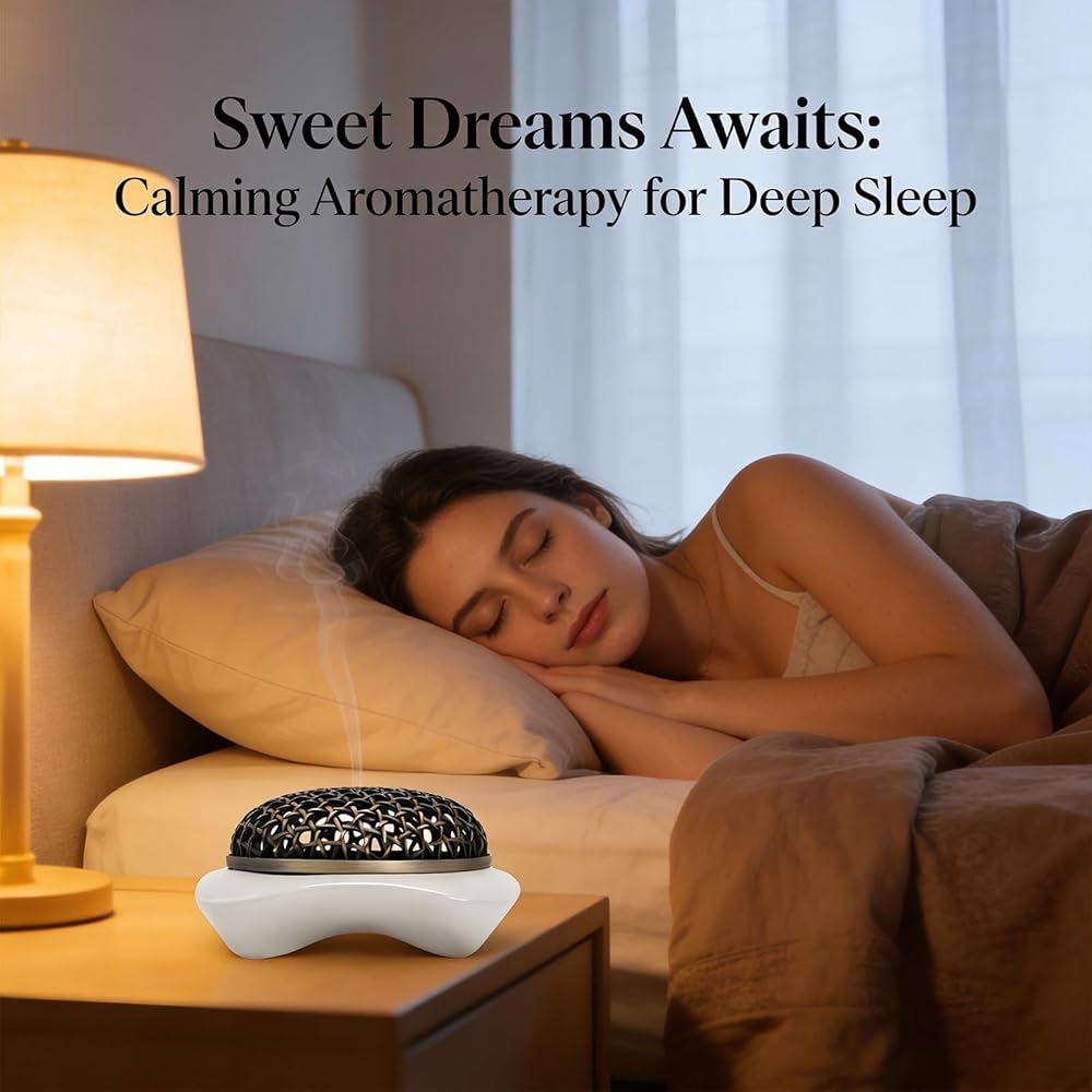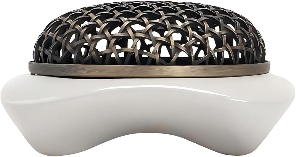 Key Features: Soothing scents, stylish design. This ceramic burner with white base and lattice dome fills your space with calm. Perfect for focus, sleep, or pure relaxation—your quick escape to peace.