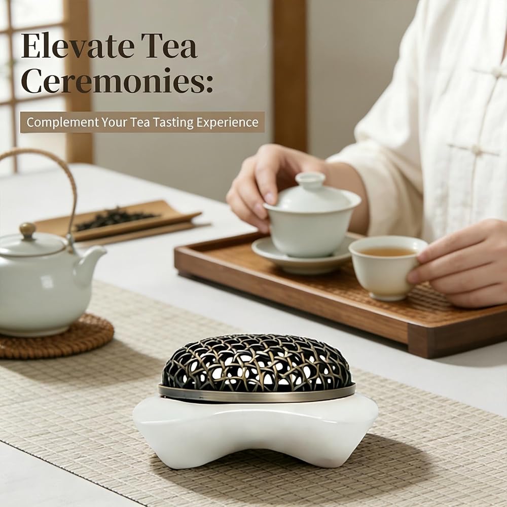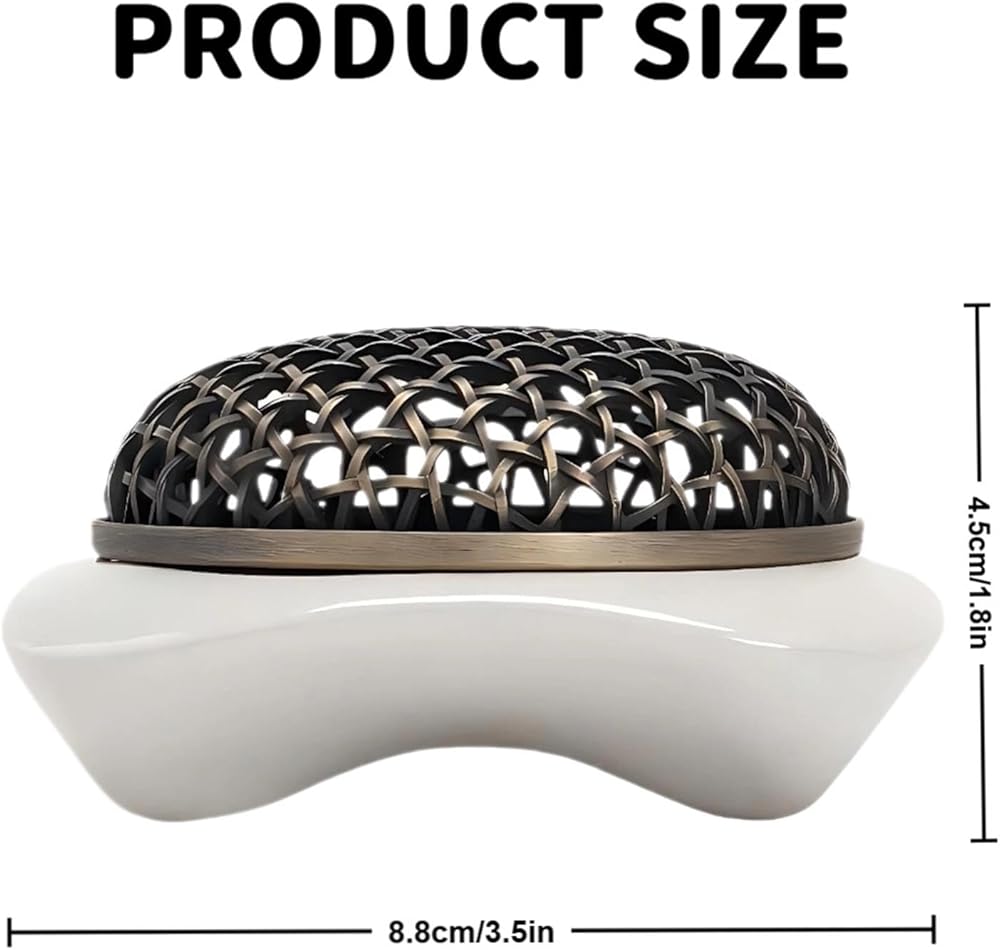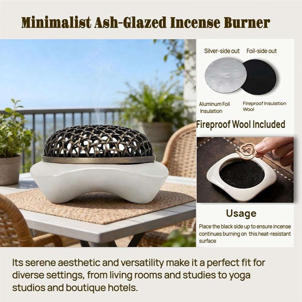 MINIMALIST DESIGN: Ash-glazed ceramic incense burner features an elegant white base with decorative lattice metal dome top, creating a serene aesthetic perfect for living rooms, bedrooms, study rooms, offices, yoga studios, and boutique hotels