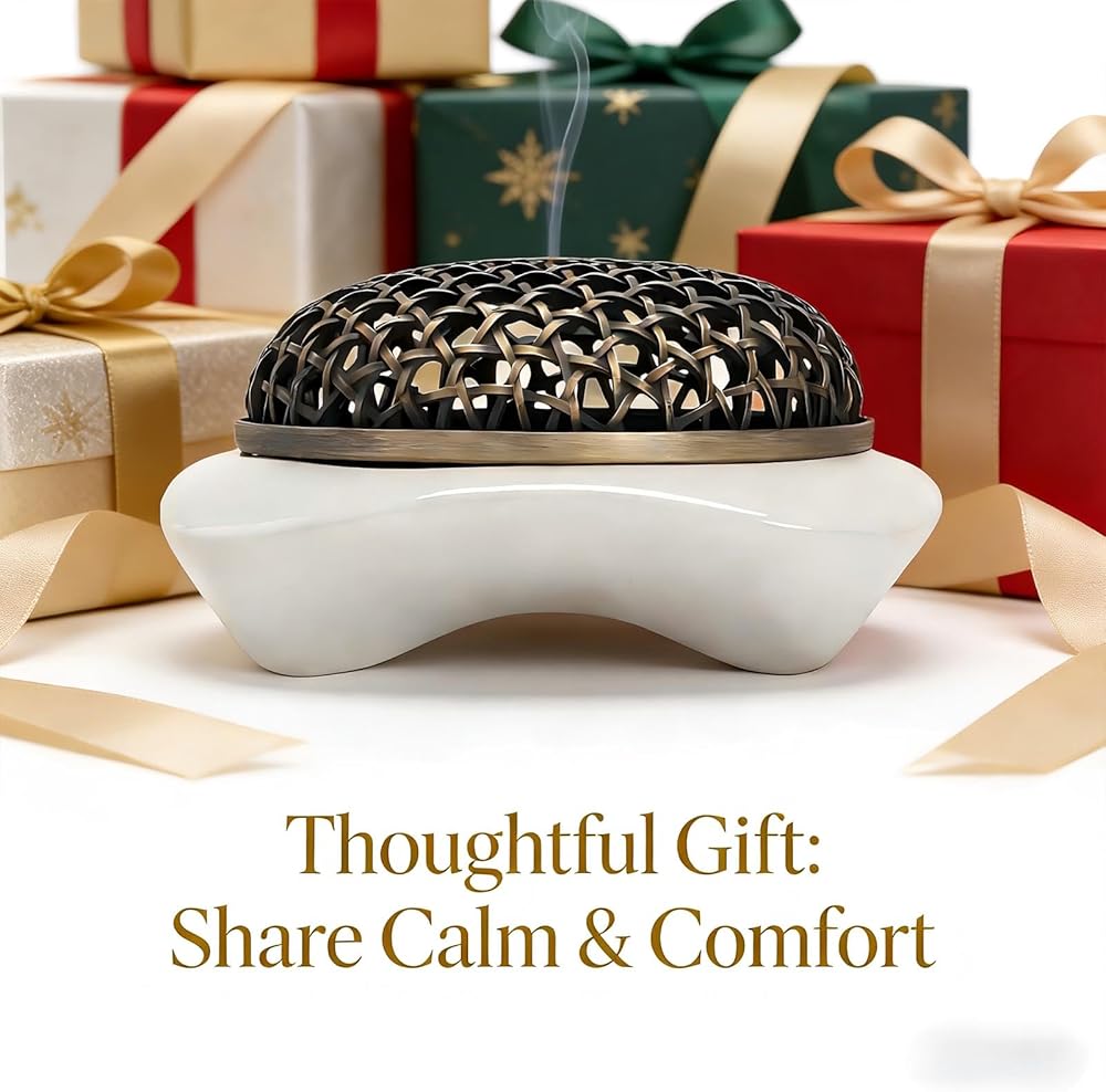 PREMIUM CONSTRUCTION: Crafted from high-quality ceramic with a smooth glazed finish and durable metal lattice cover that allows fragrant smoke to disperse evenly throughout your space