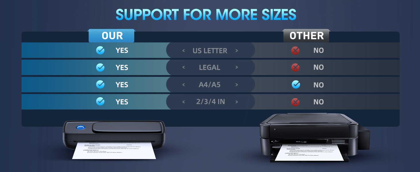 توافق Aixiqee واسع النطاق وتنسيق كبير يدعم أحجام الورق التي تصل إلى 8.5 بوصة × 11 بوصة (A4)، وهو مثالي للمستندات والملاحظات والصور والقوائم - حيث يجمع بين إمكانية النقل وحجم الإخراج العملي.