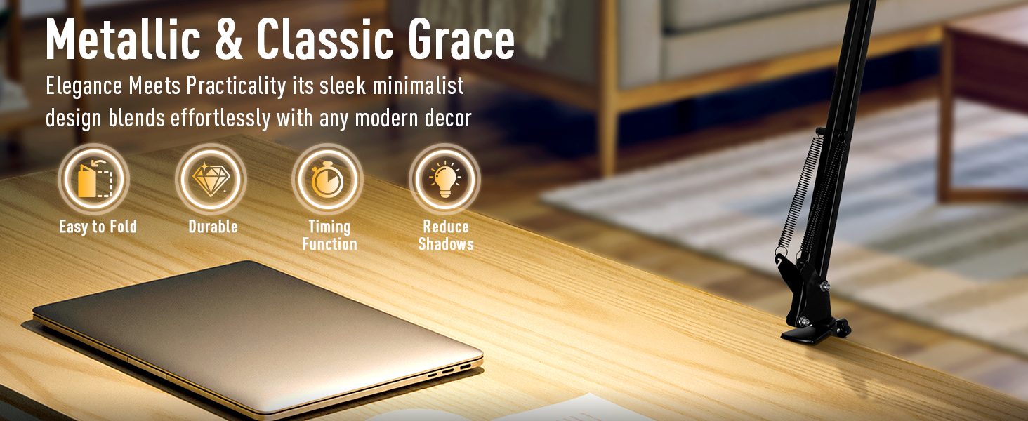 【نطاق مرن كبير قابل للتعديل】يوفر هذا المصباح المكتبي ذو الذراع المتأرجح مقاس 81.28 سم تغطية إضاءة ممتدة للوصول إلى كل زاوية وزاوية تحتاجها، وهو قابل للتعديل ليناسب مستويات الراحة الشخصية، ويمنع الوهج من التأثير على عينيك. مع قاعدة قابلة للتعديل بزاوية 360 درجة ومشبك معدني قوي، يمكن تثبيت المصباح المكتبي المشبك بسهولة على المكاتب التي يصل سمكها إلى 2.2 بوصة، بدون قاعدة، ويوفر المساحة.