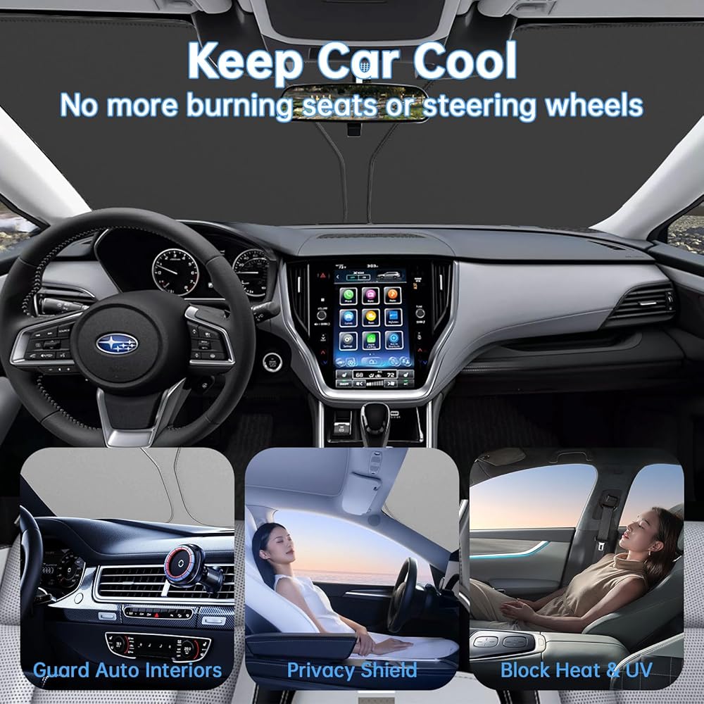 • 【مثالية لوقوف السيارات في الهواء الطلق🚘】يمكن لمظلة الشمس للزجاج الأمامي من Subaru Outback أن توفر لك مساحة خاصة ومريحة داخل السيارة؛ تتيح لك القيادة فورًا دون الانتظار حتى يبرد مكيف الهواء المقصورة.