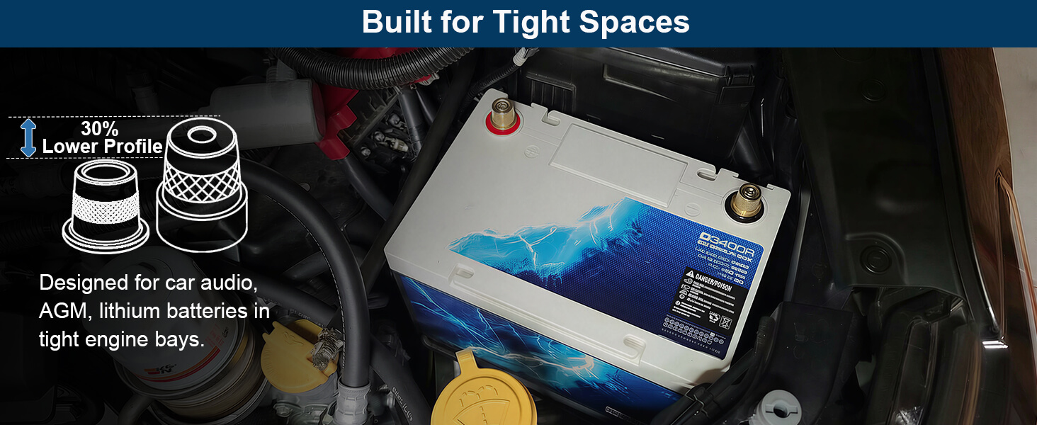 محول عمود نحاسي قصير 580: مصمم خصيصًا لأعمدة البطارية ذات النمط القصير SAE (580). مثالي لخلجان المحرك المدمجة، وأنظمة الصوت في السيارة، وبطاريات AGM وبطاريات الليثيوم التي تتطلب حلاً طرفيًا منخفض المستوى.