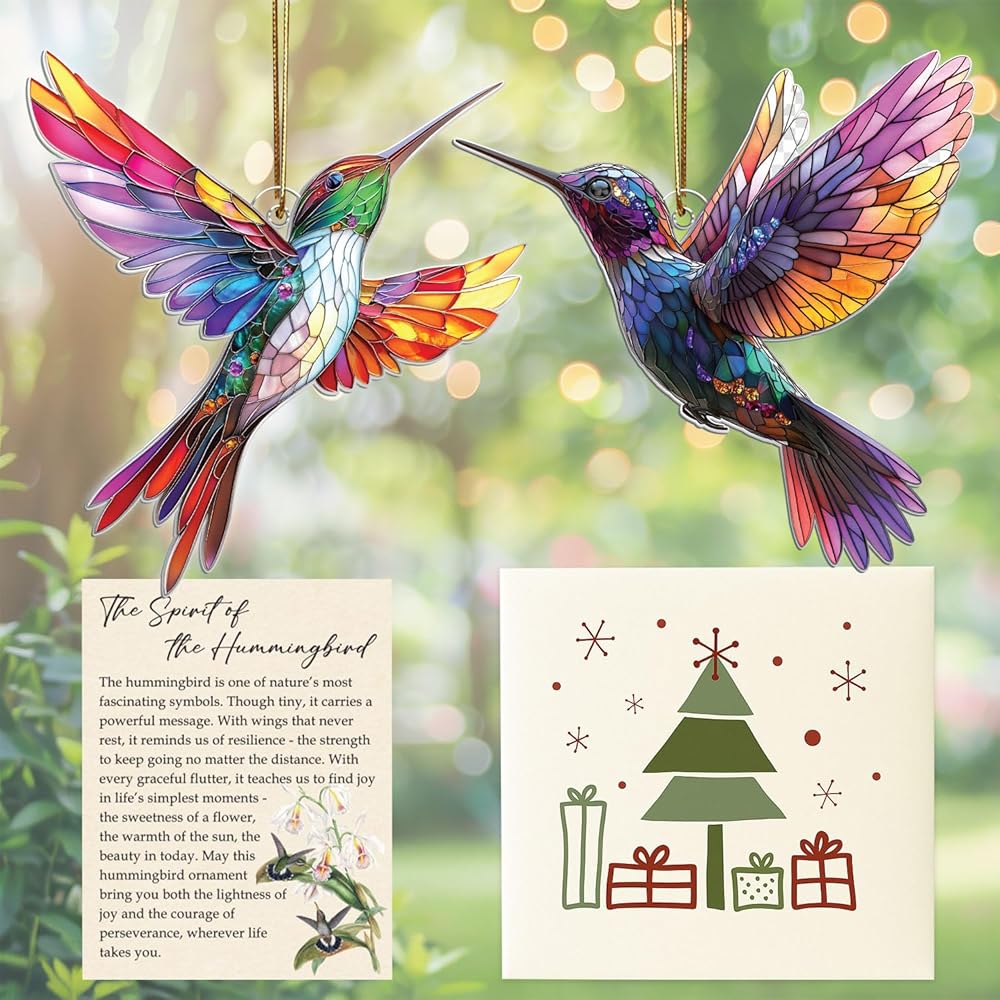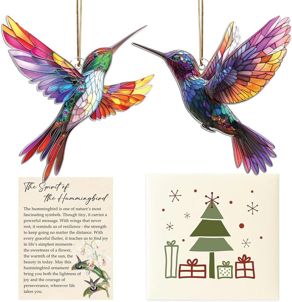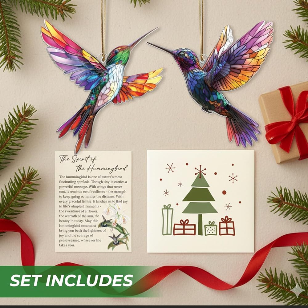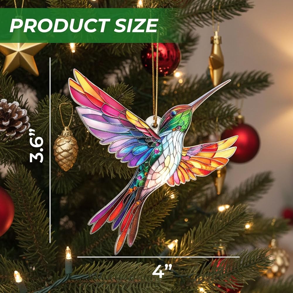 زينة الطائر الطنان الأنيقة - تصميم مذهل على شكل طائر طنان من الزجاج الملون، يضفي لونًا نابضًا بالحياة وسحرًا على شجرة عيد الميلاد الخاصة بك.