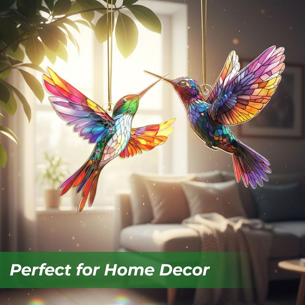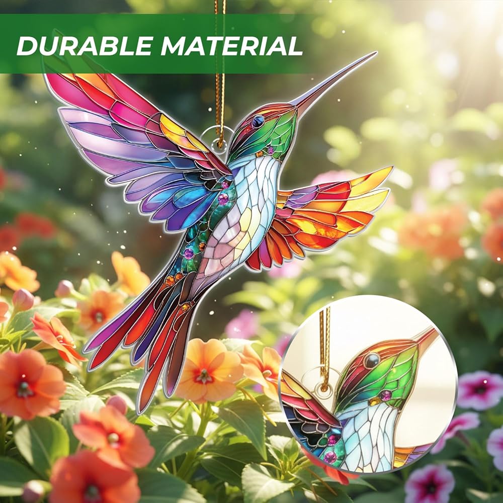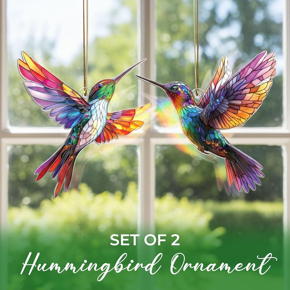 زينة الطائر الطنان الأنيقة - تصميم مذهل على شكل طائر طنان من الزجاج الملون، يضفي لونًا نابضًا بالحياة وسحرًا على شجرة عيد الميلاد الخاصة بك.