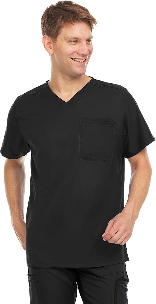 MediChic's newest men's scrub top features an ultrasoft fabric texture, two functional pockets, and is available in over FOUR colors. Grab a top in every color for each day of the week and work in comfort!