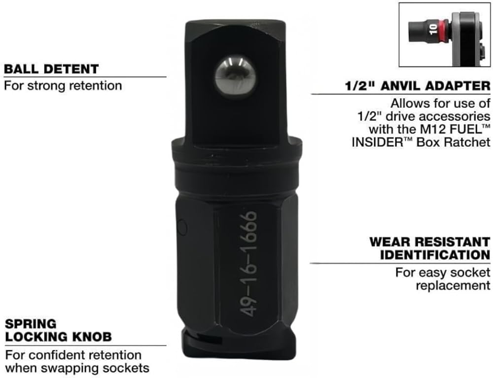 49-16-1666 صندوق داخلي بسقاطة 1/2 بوصة محول سندان مع وظيفة القفل لسقاطة صندوق ميلووكي M12 للوقود من الداخل