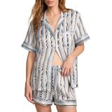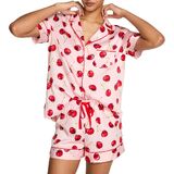 - تأتي هذه المجموعة مع بلوزة بأكمام قصيرة وسروال بيجامة برباط مطابق.