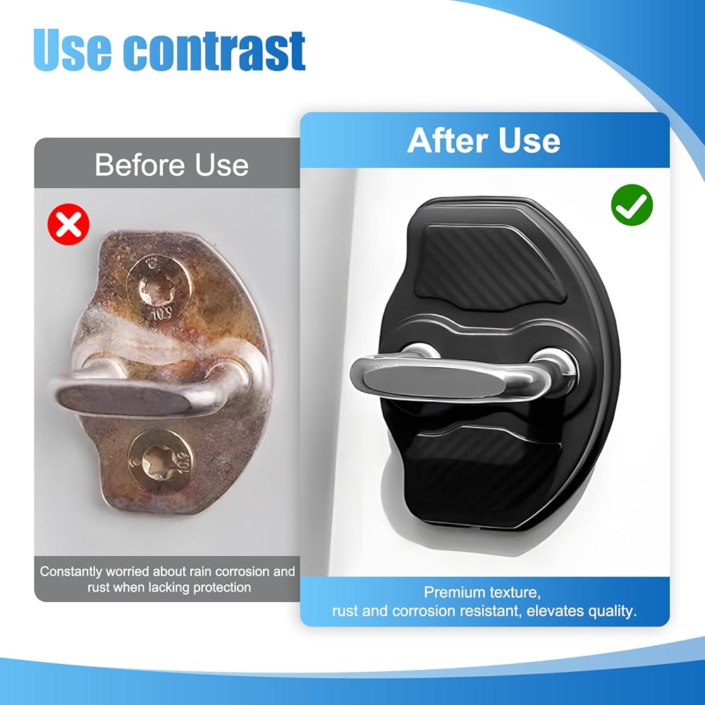 Compatibility: These door lock covers are compatible with Tesla models. Their design ensures a perfect fit to your vehicle's door lock mechanism, creating a sleek, factory-installed look that blends seamlessly with your car's elegant design. Precise installation ensures a secure and reliable fit without affecting door operation or the locking mechanism, providing protection