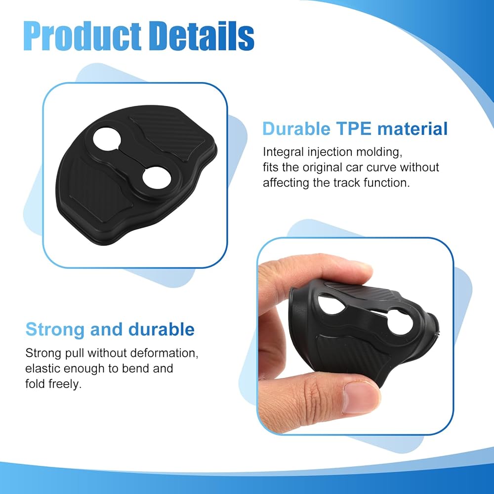 TPE Material: These door lock covers are made from premium thermoplastic elastomer (TPE) material, combining exceptional durability and flexibility to withstand daily use and maintain a pristine appearance. This advanced TPE formula provides superior weather resistance, UV protection, and performance against temperature fluctuations common in automotive environments
