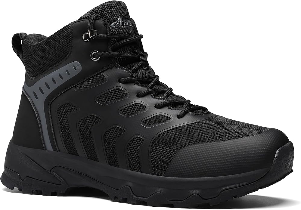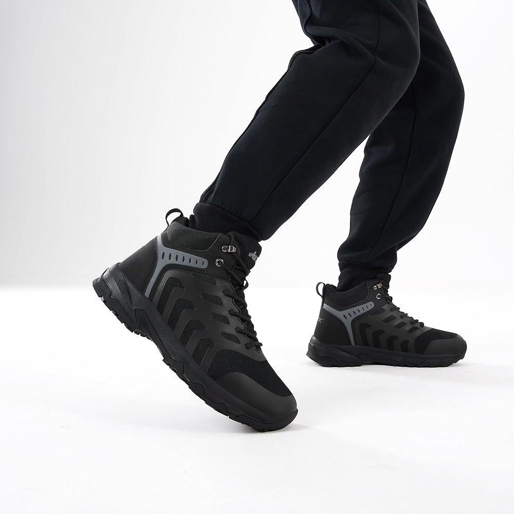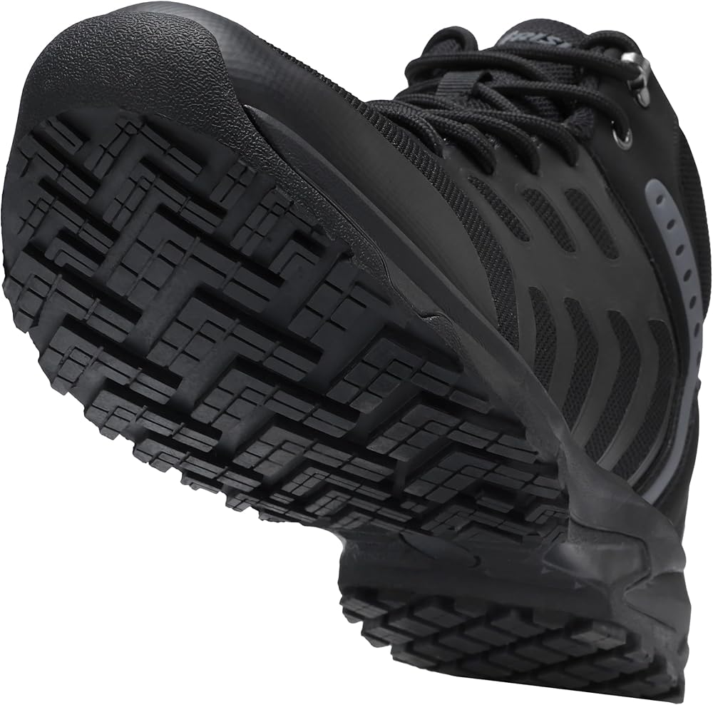 دعم الكاحل: تتميز أحذية العمل السوداء للرجال بتصميم متوسط الارتفاع لدعم الكاحل الصلب. النعل الأوسط المبطن الفاخر يقلل من تأثير المشي، ويقلل من التعب الناتج عن ساعات طويلة على القدمين.