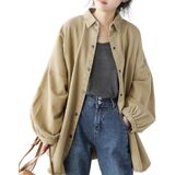 - Feature: No Pockets, Solid Color, Front Button Closures, Long Sleeves, Boyfriend Style, Turn-Down Collar, Loose Fit Shirts.