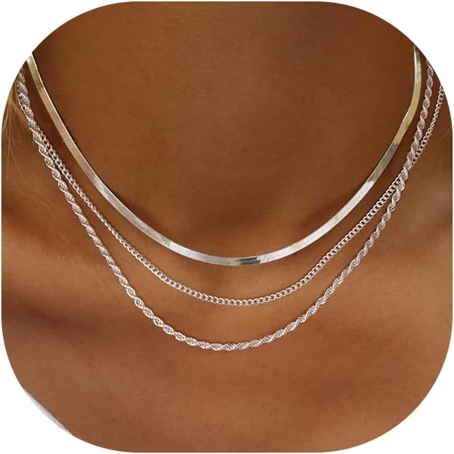 3 IN 1 VERSATILITY: Wear the 16.5” Rope, 16” Cuban, and 14” Herringbone chains together for a bold layered look, or style them separately to match any outfit or occasion.