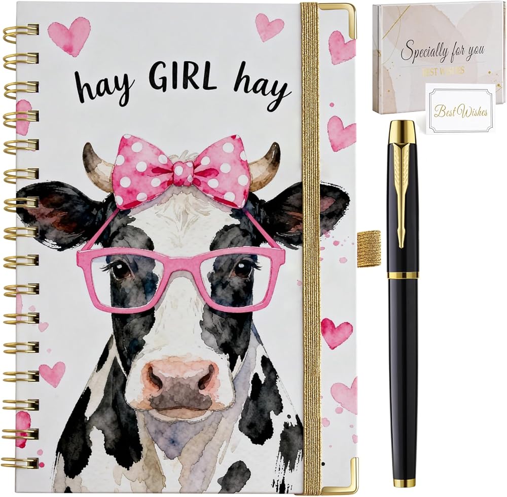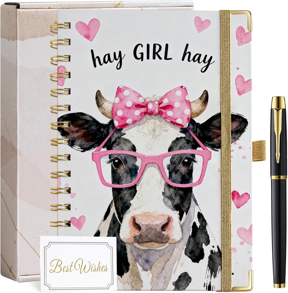 Adorable Cow Gifts for Women with Premium Quality: Our notebook boasts a high-quality hardcover that radiates elegance and sturdiness, built to last through daily use. Each set includes one cow-themed A5 spiral notebook, one smooth metal ballpoint pen, and one heartfelt greeting card—all beautifully packaged in an elegant gift box. This all-inclusive bundle is a perfect, ready-to-gift present for any occasion, no extra preparation needed