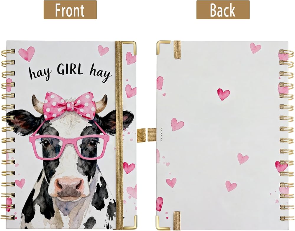 Perfect Cow Lover Gifts for Enthusiasts: Both the front and back covers of the notebook are printed with cute, vibrant cow patterns that are eye-catching and full of charm. The colorful, vivid designs will delight any cow lover, adding a touch of whimsy and joy to daily note-taking, journaling, or planning