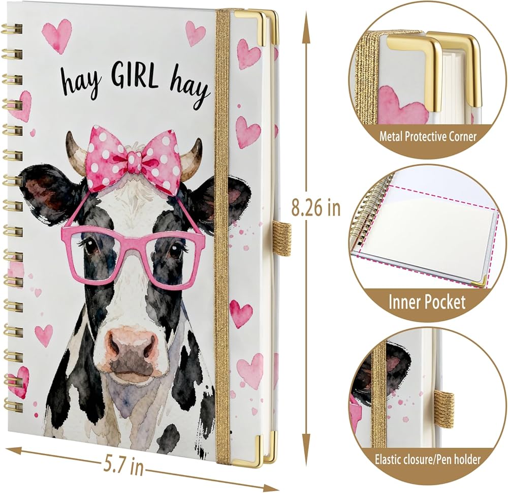 Cow Gifts for Women Cow Lovers A5 Spiral Notebook Journal 200 Pages A5 Lined with Pen Cute Girly Gifts for Women Teen Girls Kids