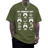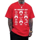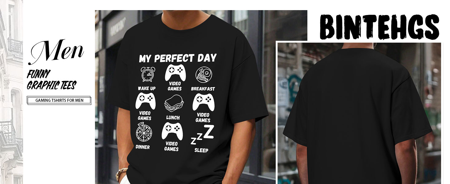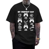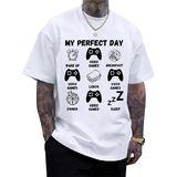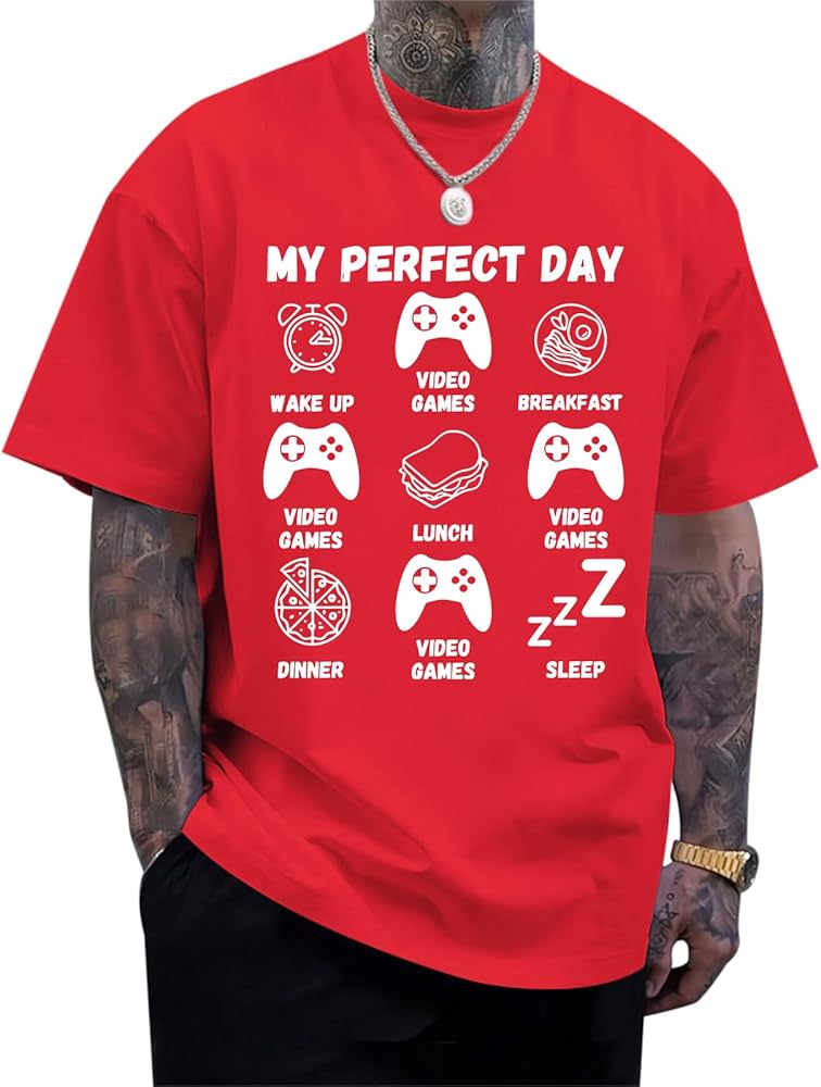 تصميم رسومي مضحك للاعب: يتميز برسومات ألعاب الفيديو المرحة "My Perfect Day" مع وحدات التحكم والطعام وأيقونات النوم، هذا التيشيرت يجسد بشكل مثالي الروتين المثالي للاعب. إنه اختيار متميز بين القمصان المضحكة للرجال والتي شيرتات ذات الرسومات المضحكة التي تظهر الفكاهة والشخصية