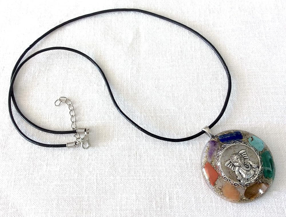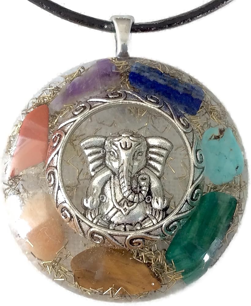 Features a beautiful silver Lord Ganesha charm surrounded by clear Quartz crystals and brass metal shavings